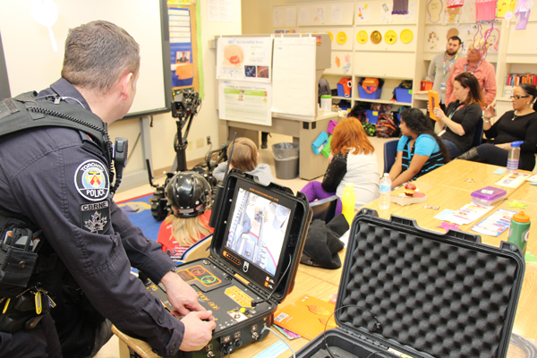 Curious laughs and giggles spread throughout the classroom when a special guest paid a visit to the SickKids Robotics Club last month. The program hosted Toronto Police Const. Nick Sword and a robot from The Chemical, Biological, Radiological, Nuclear Explosives Response Team (CBRNE).