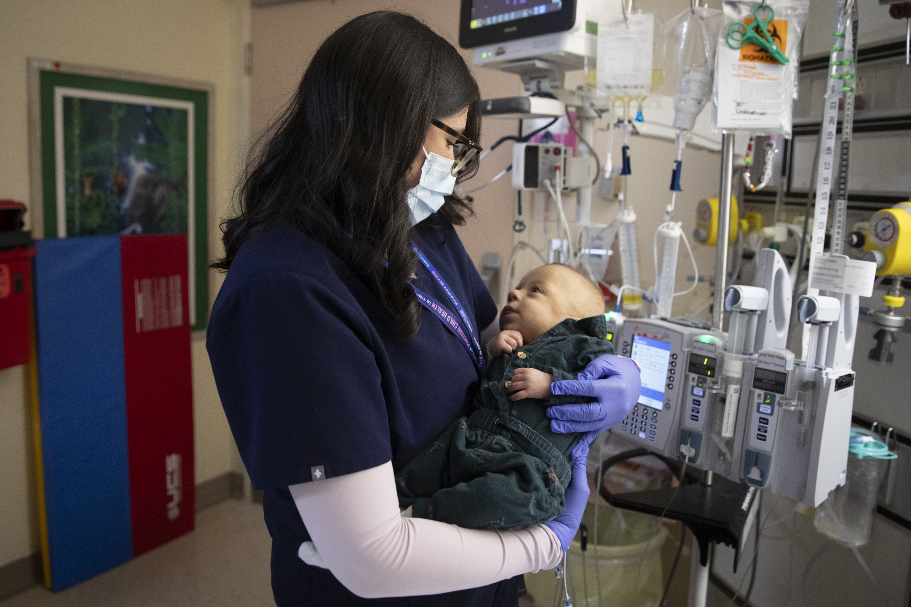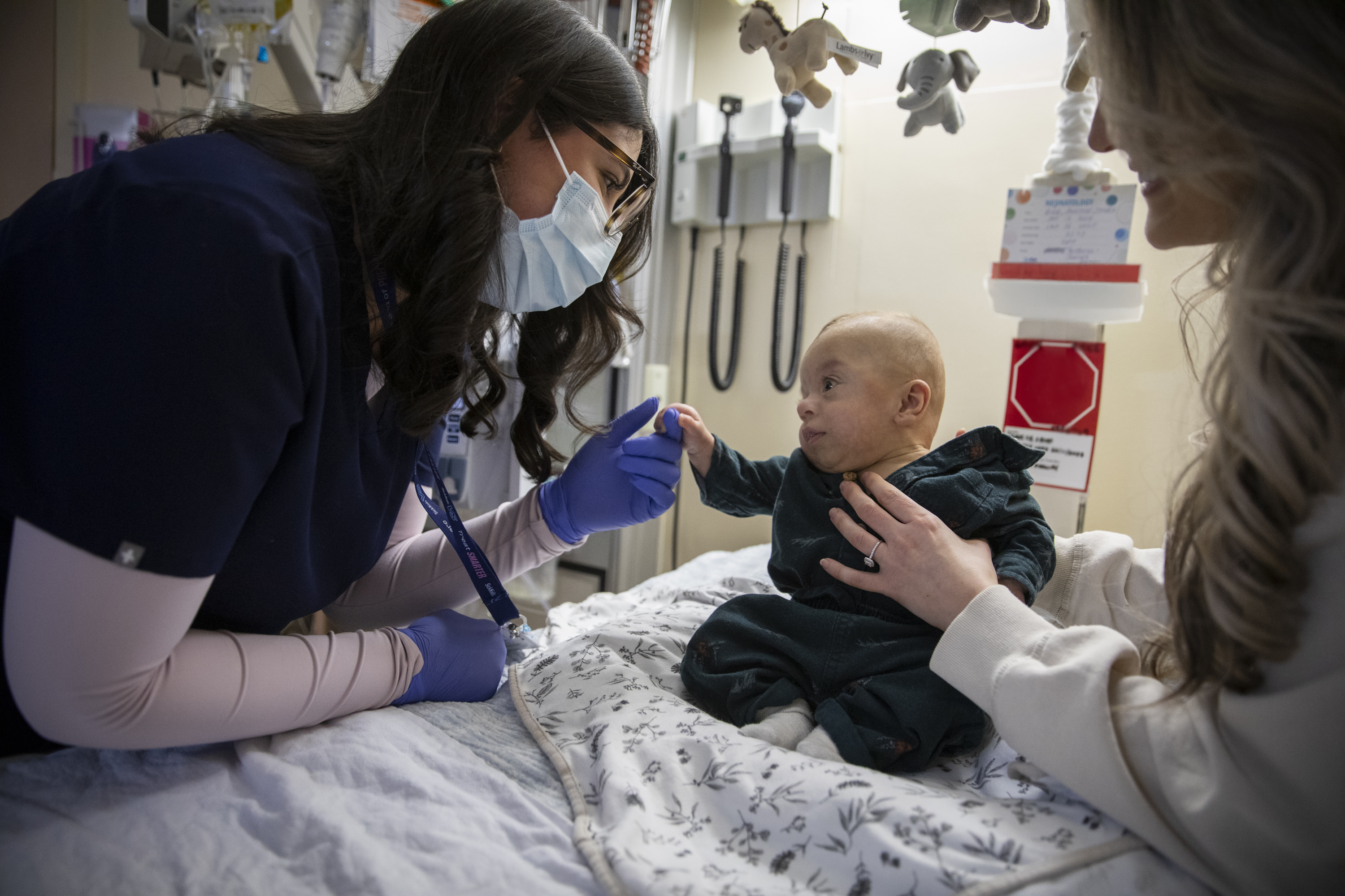 On 6A, Sofia España cares for patients like Austin and his mom, Kristina, offering both clinical skill and a reassuring presence while families navigate complex care.